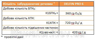 Технологія очищення стічних вод DELFIN PRO передбачає очищення стічних вод до показників, як показано нижче: